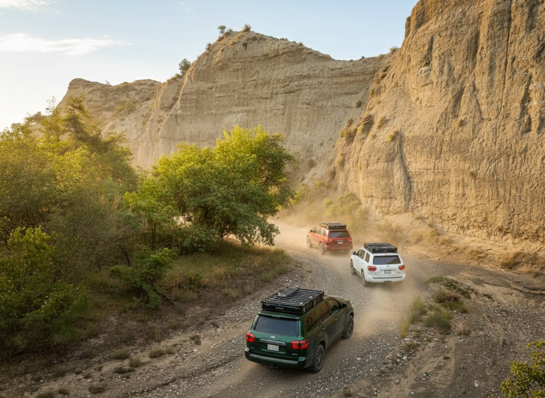 Tijdens de Roadtrip rijd je in een Toyota Sequoia – een krachtige, ruime en betrouwbare 4x4 die soepel rijdt op asfalt en moeiteloos onverhard terrein aankan.