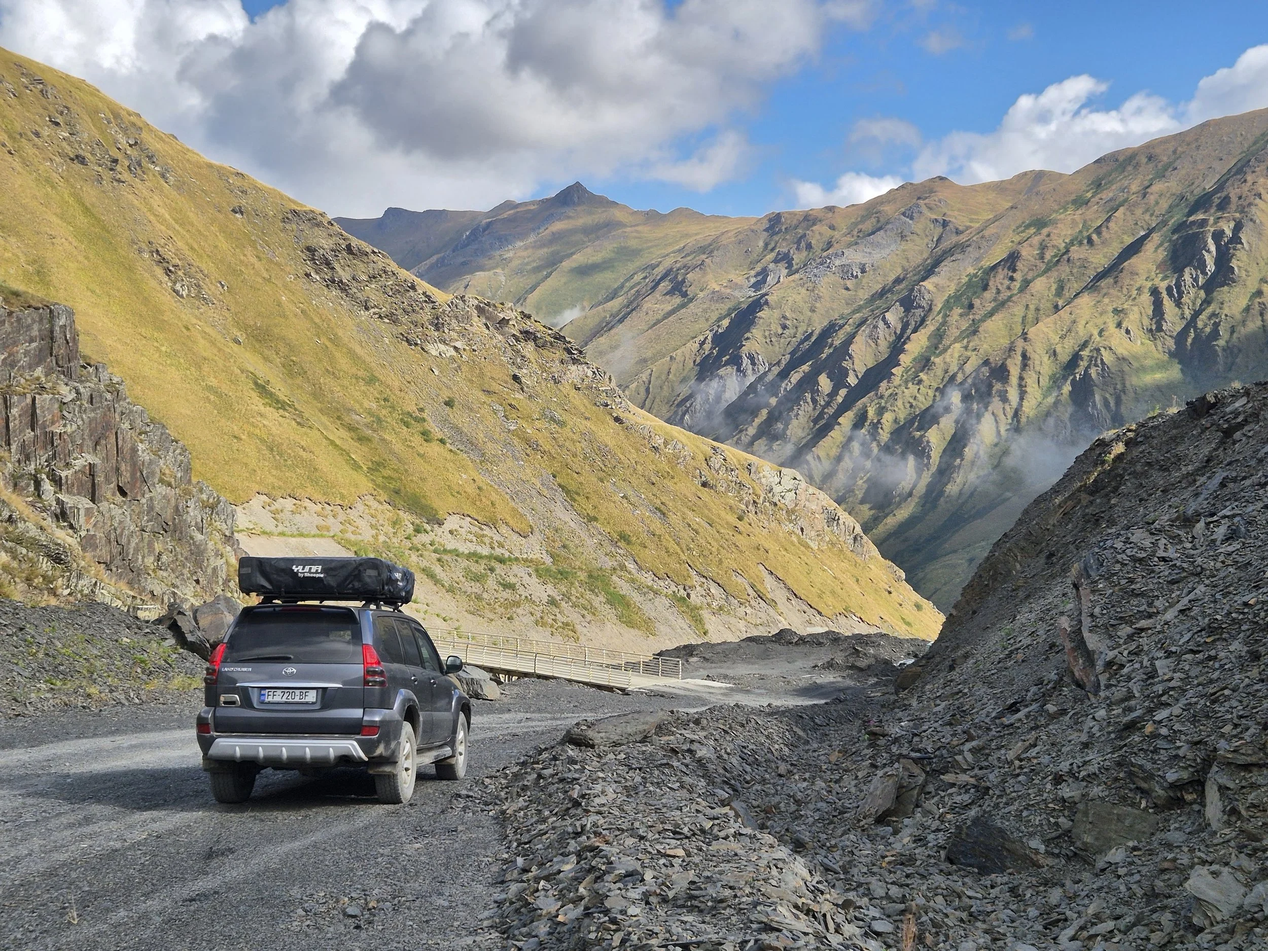 Tijdens deze trail verken je niet één maar twee indrukwekkende berggebieden. Je rijdt langs kronkelende wegen en hoge passen, bezoekt afgelegen valleien en ervaart de rauwe schoonheid van de Kaukasus in al zijn variatie. De natuur tekent het landschap met kleurrijke mineralen, warmwaterbronnen en grillige rotsformaties.